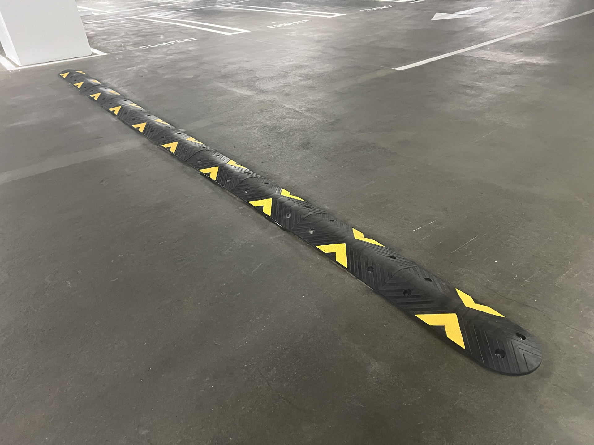 Our high visibility speed bumps effectively slow traffic without vehicle or tire damage. Increase pedestrian safety. Installs easily with lag bolts. Simply drill a hole with a masonry bit and penetrate the asphalt or concrete surface below. Removable for road surface maintenance.